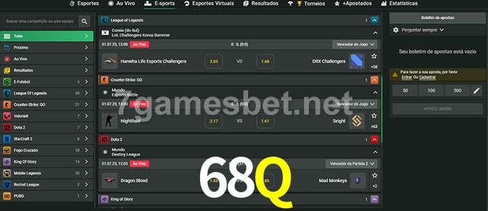 O 68Q oferece uma grande seleção de opções de apostas em e-sports com probabilidades competitivas